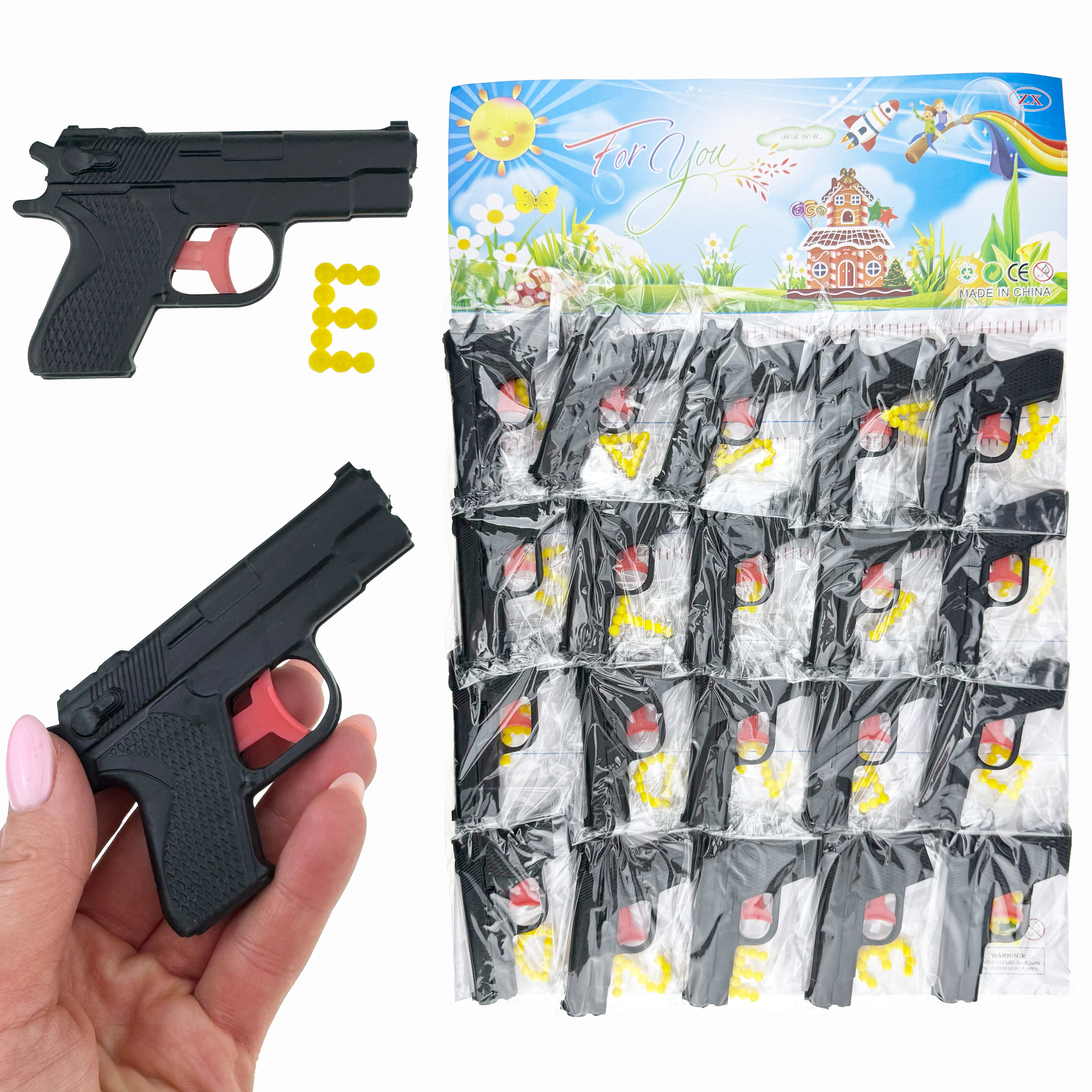 Пістолет маленький з кульками жовті фігурки або літери на планшетці (20) /2000/