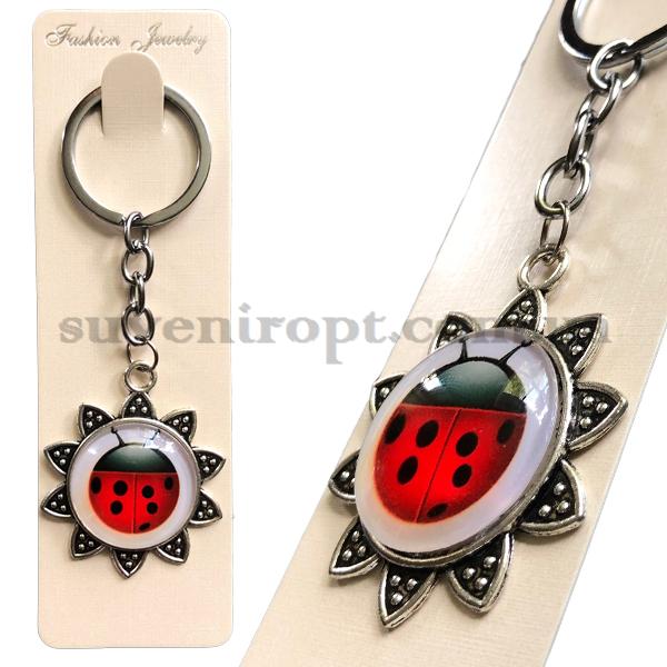 Брелок металлический в упаковке стекло божья коровка в цветке (12)