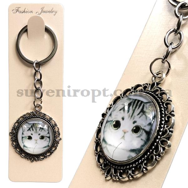 Брелок металлический в упаковке стекло котик серенький (12)
