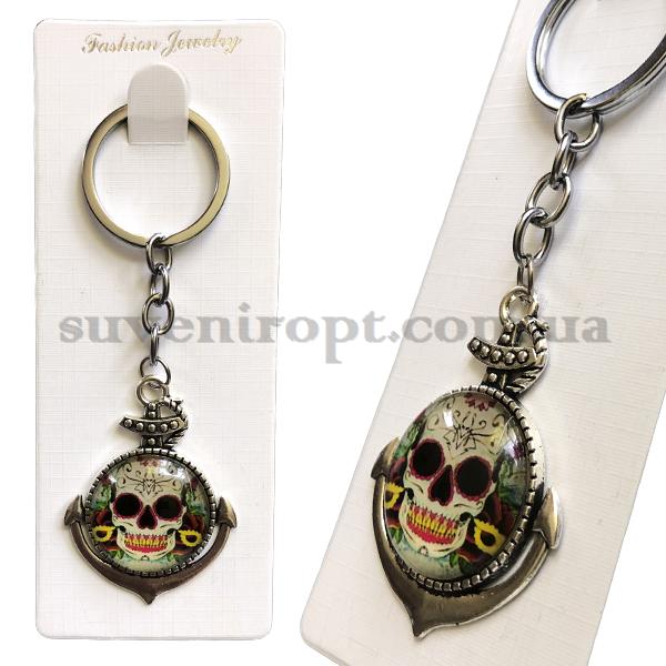 Брелок металл в упаковке якорь с черепом стекло (12)