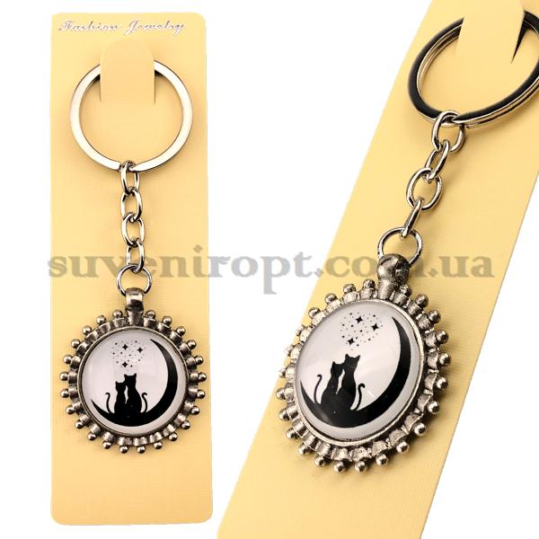 Брелок металлический в упаковке стекло коты на месяце (12)