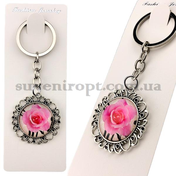 Брелок металлический в упаковке стекло роза в узорах (12)