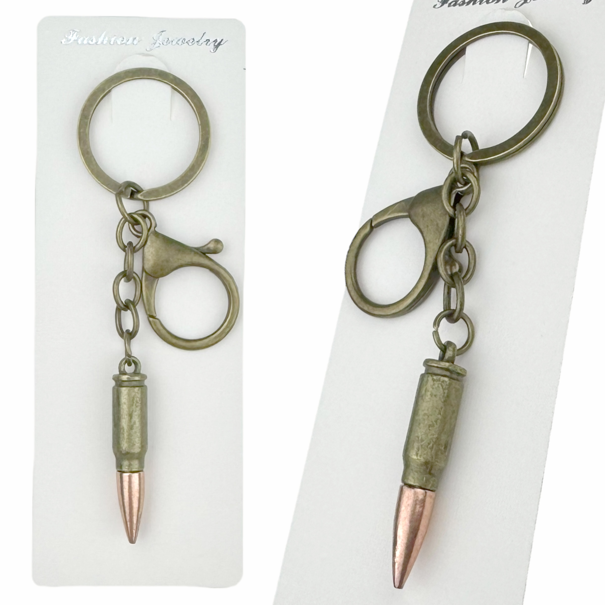 Брелок в упаковці пуля металева бронзова з золотим наконечником (12)