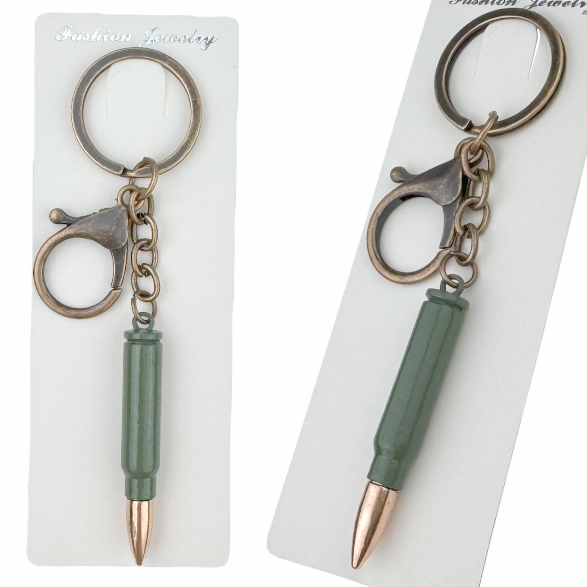 Брелок в упаковці металева зелена середня пуля з золотим наконечником (12)