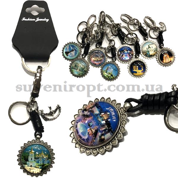 Брелок в упаковке Киев стекло кожа круглый в сердцах (12)